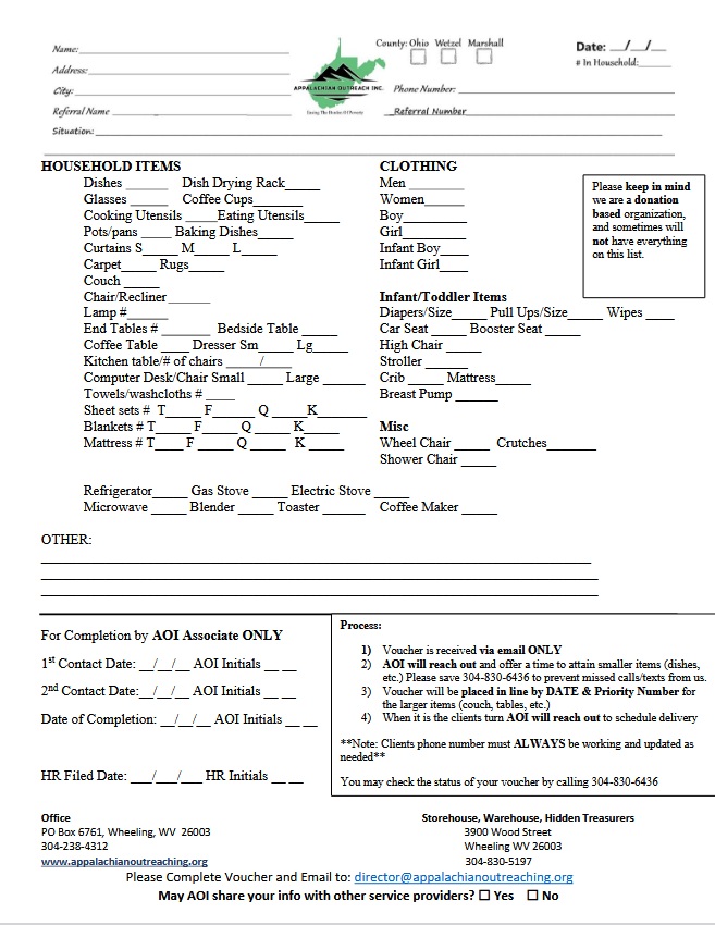 At Appalachian Outreach, Inc., we believe that dignity, compassion, and access to essentials should never be out of reach. That’s why we developed our Client Voucher System — a collaborative effort between AOI and many incredible partner agencies and organizations across the region.